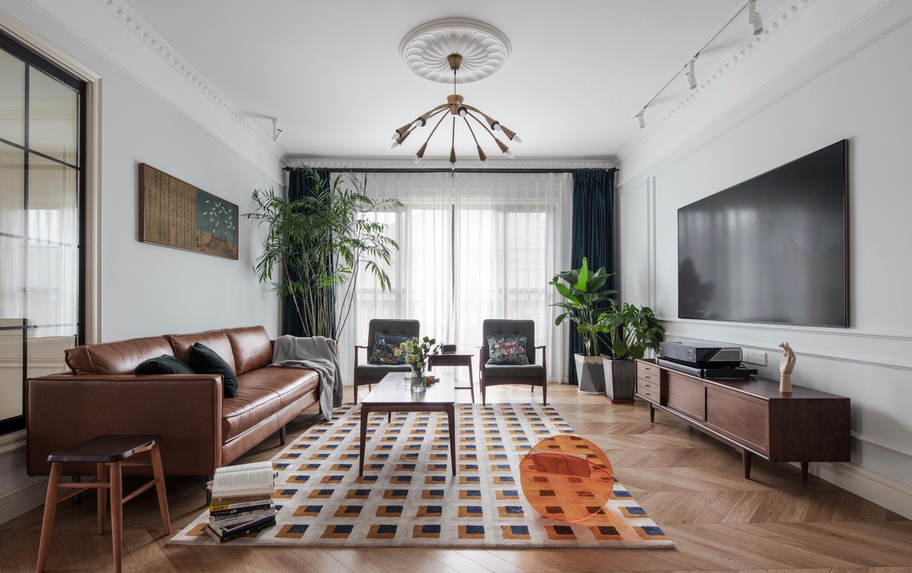 客廳大體是一家三口最長(zhǎng)活動(dòng)場(chǎng)所,這個(gè)區(qū)域我總體采用的功能性和美觀性結(jié)合的方式。 整體色調(diào)的統(tǒng)一:整體以胡桃實(shí)木的顏色做總色調(diào),從胡桃實(shí)木的茶幾到胡桃木的電視柜,再到棕色調(diào)的真皮沙發(fā),最后再是一塊長(zhǎng)方形的大地毯,做幾個(gè)顏色(淺白+棕色+黑色)的重疊,與整個(gè)空間所有顏色進(jìn)行呼應(yīng)。房主很喜歡夏威椰,因?yàn)橛兄竦臍赓|(zhì),因此它別名也叫夏威夷竹子。濃綠的色彩,茂密的枝條,富有光澤的綠葉傳遞給人一種欣欣向榮的精神氣。它能通過(guò)呼吸微調(diào)節(jié)空氣環(huán)境,吸收房中甲醛等揮發(fā)性物質(zhì)。從風(fēng)水上來(lái)講,它放在柱子下面有去煞氣之說(shuō)。