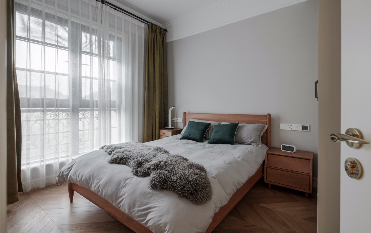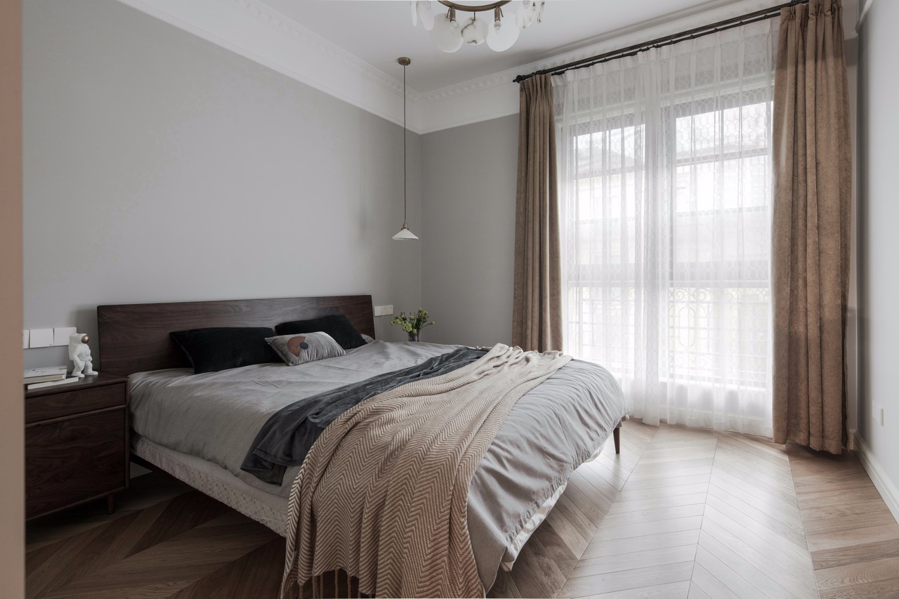 房主比較偏愛(ài)灰色調(diào),從床品的選擇可以看出來(lái),灰色代表低調(diào),格子代表嚴(yán)謹(jǐn),而藍(lán)色靠枕一點(diǎn)綴,內(nèi)心的熱情與奔放又不言而喻。大體可以看出男主人是一個(gè)悶騷的文藝暖男。