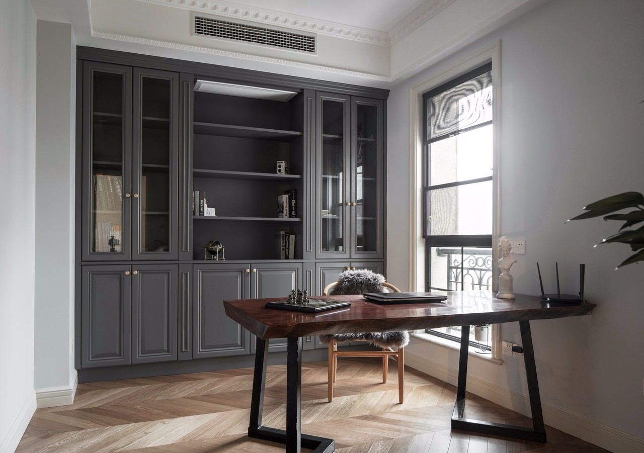 書(shū)房空間開(kāi)放之后,光線(xiàn)充足,空間自由,全實(shí)木材質(zhì)的定制書(shū)桌書(shū)架,搭配原木色的椅子,十分有質(zhì)感。 這大概是房東的私人空間,墻面的部分做了櫥柜,方便擱置書(shū)籍和小禮物的地方。顏色調(diào)性和廚房櫥柜保持了一致。 書(shū)桌買(mǎi)了簡(jiǎn)易型又文藝的桌子,甚至它可以搖身一變,變成茶室(自行想象)。靠近窗戶(hù)的位置,也是為了采光較好,方便閱讀和思考。有時(shí)候頭腦需要休息的時(shí)候,還可以向著窗外吹吹風(fēng),發(fā)發(fā)呆。