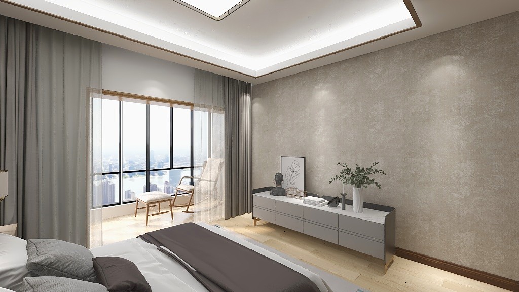 飛鳥意境的墻布搭配暖色性的木飾面襯托出家的溫馨